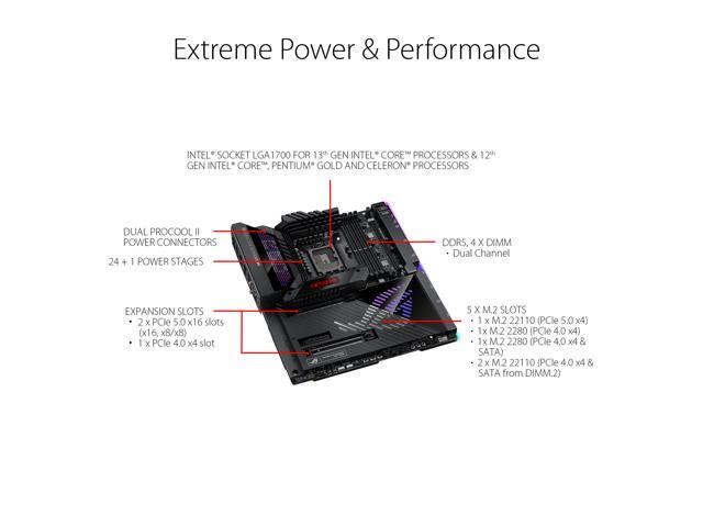 ASUS ROG Maximus Z790 Extreme (WiFi 6E) LGA 1700(Intel®12th&13th Gen) EATX gaming motherboard (PCIe 5.0, DDR5,24+1 105A power stages,5x M.2,1xPCIe 5.0 M.2,10Gb&2.5Gb LAN,2xThunderbolt 4 onboard, AniMe Matrix LED,USB 3.2 Gen 2x2 front-panel)