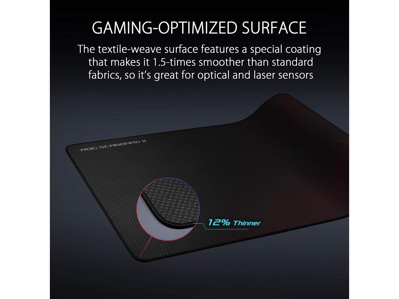 - SMOOTH GLIDE FOR GAMING - A smooth glide from your mouse pad is the difference between victory & defeat. Made out of military-grade nano-coating, the ROG scabbard II is made to repel water, oil and dust for an optimally smooth glide for your mouse.