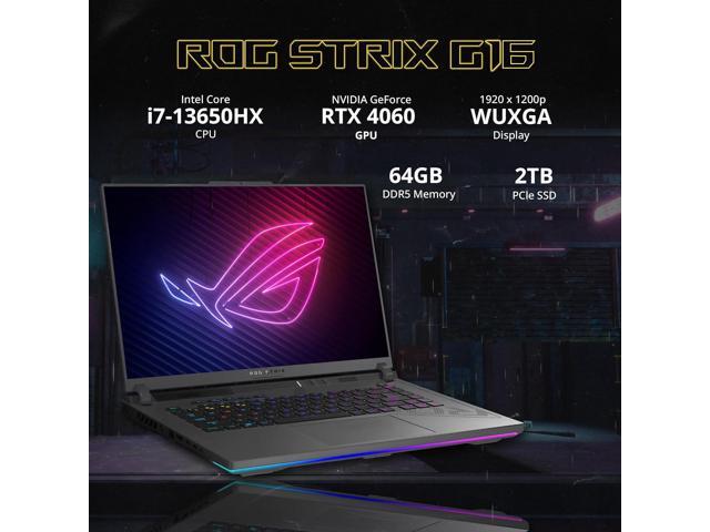 ASUS ROG Strix G16 16" 165Hz FHD Gaming Laptop, NVIDIA GeForce RTX 4060 8GB GDDR6, Intel Core i7-13650HX, 64GB DDR5, 2TB PCIe SSD, Backlit Keyboard, Windows 11 Pro, Gray, 256GB Docking Station Set