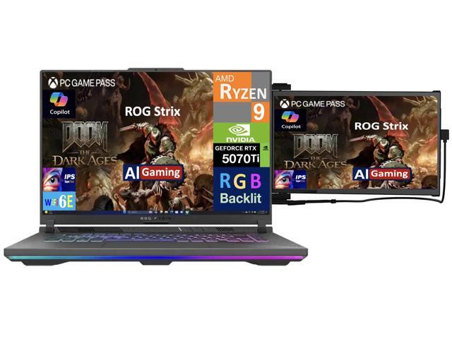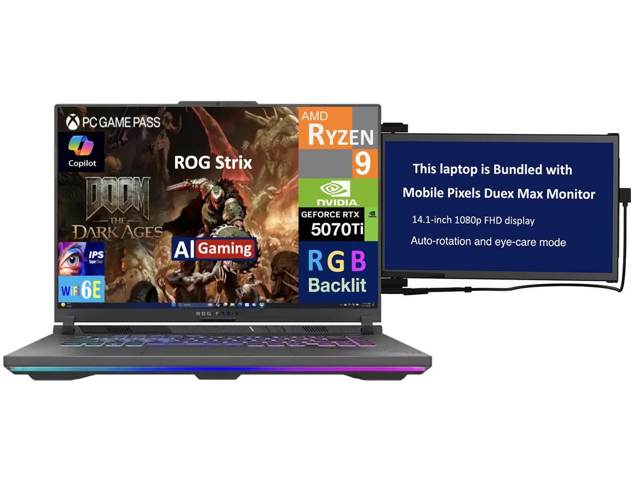 ASUS ROG Strix AI Gaming Laptop 16.0" 165Hz IPS WUXGA Display (AMD Ryzen 9 8940HX, NVIDIA GeForce RTX 5070 Ti 12GB, 32GB DDR5, 1TB PCIe SSD, RGB KB, WiFi 6E, Webcam, Win 11 Home) w/Duex Max DS Monitor