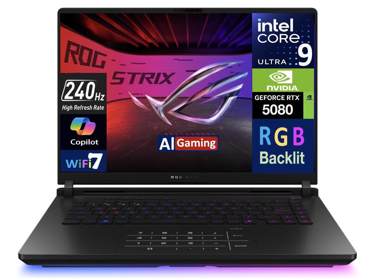 ASUS ROG Strix AI Gaming Laptop 16.0" 240Hz Mini LED WQXGA Display (Intel Ultra 9- 275HX, GeForce RTX 5080 16GB, 64GB DDR5, 8TB PCIe SSD, RGB KB, 2 Thunderbolt 5, WiFi 7, Webcam, Win 11 Pro)