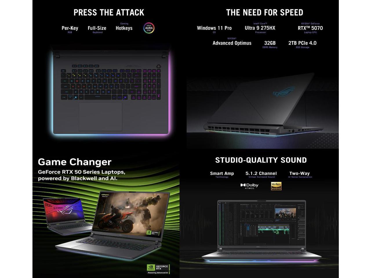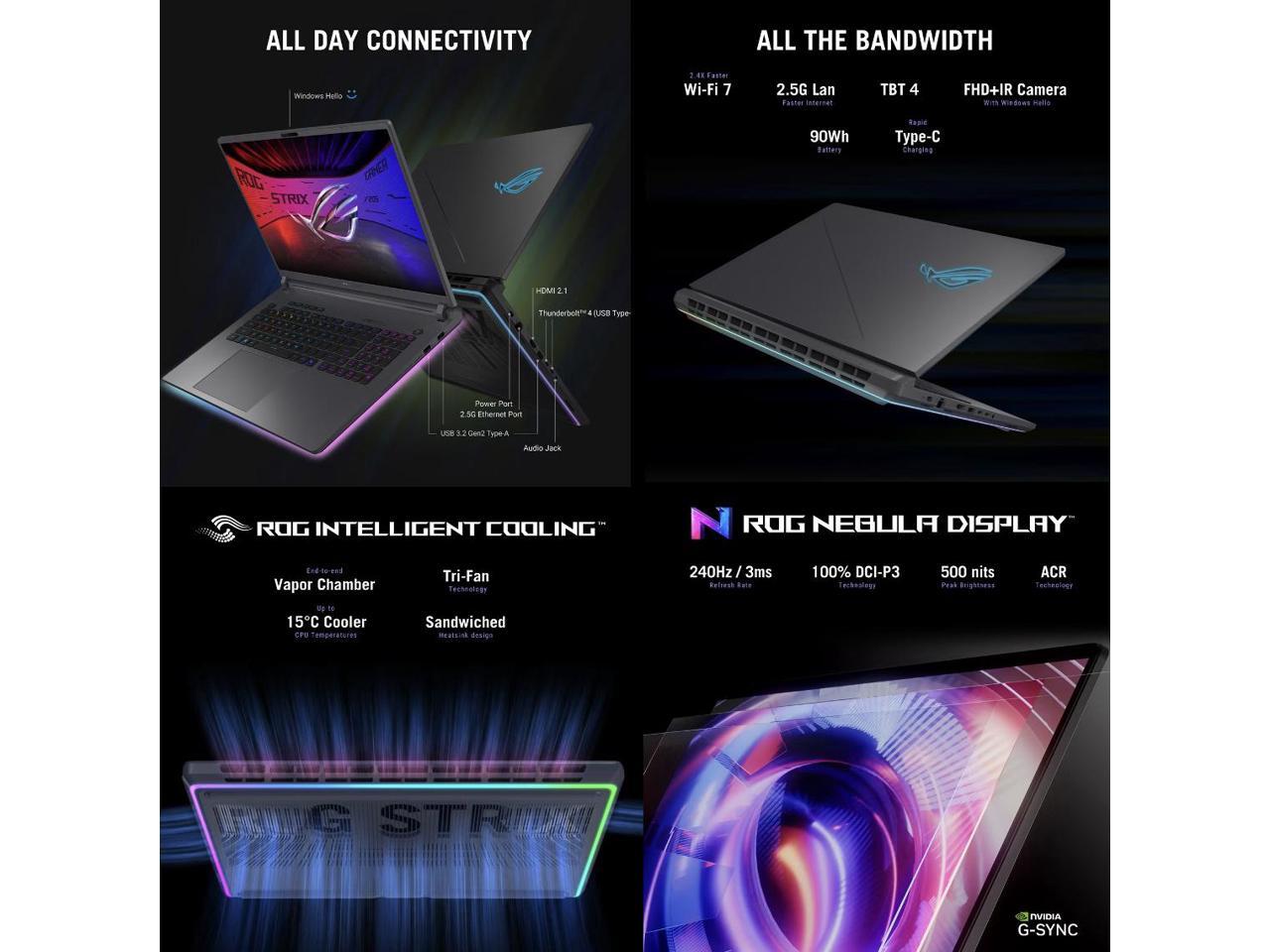 ASUS ROG Strix AI Gaming Laptop 18" 240Hz IPS WQXGA Display (Intel Ultra 9- 275HX, NVIDIA GeForce RTX 5070 8GB, 32GB DDR5, 4TB PCIe SSD, RGB KB, Thunderbolt 4, WiFi 7, Webcam, Win 11 Pro)