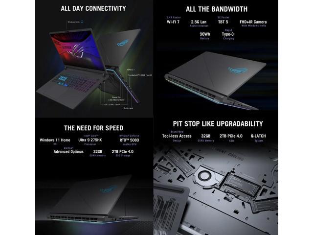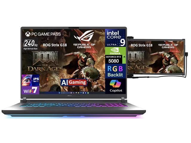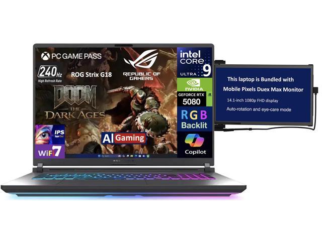 ASUS ROG Strix AI Gaming Laptop 18" 240Hz IPS WQXGA Display (Intel Ultra 9- 275HX, GeForce RTX 5080 16GB, 64GB DDR5, 4TB PCIe SSD, RGB KB, 2 Thunderbolt 5, WiFi 7, Win 11 Pro) w/Duex Max DS Monitor