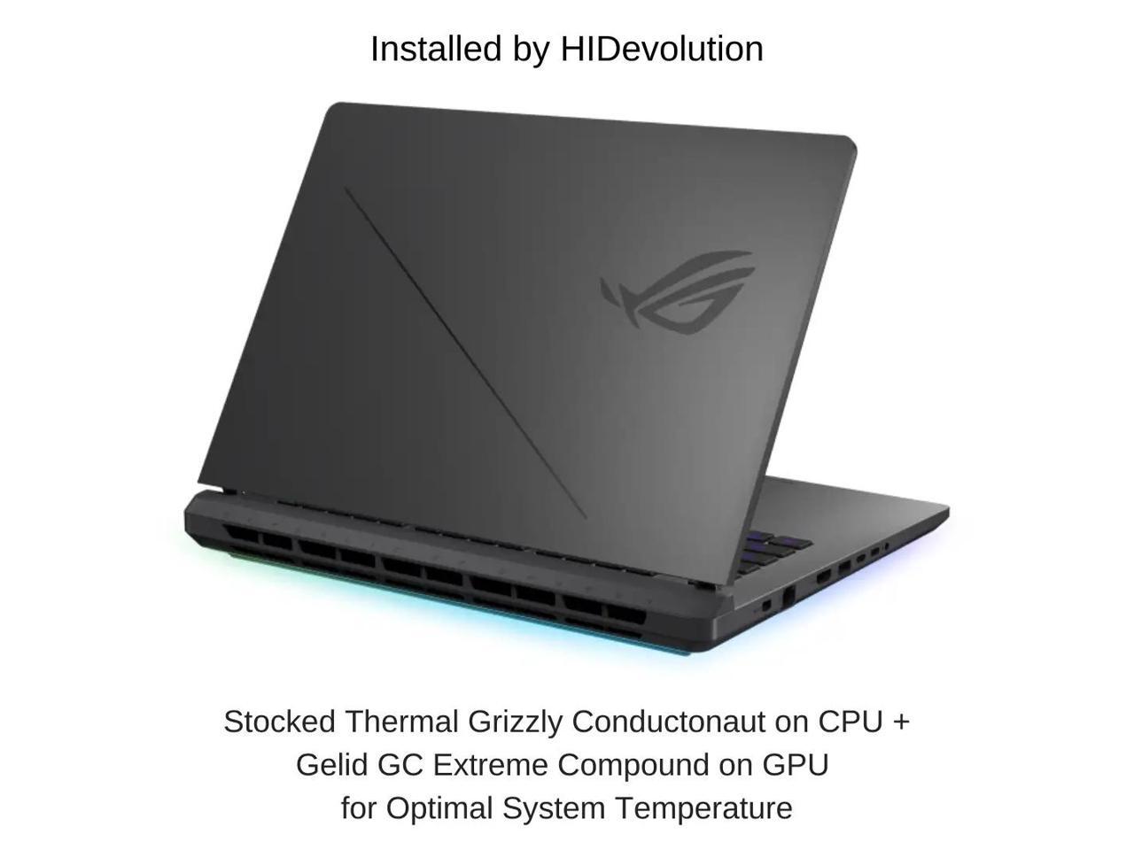 - HIDevolution upgrades the 16" 2.5K (2560 x 1600, WQXGA) 240Hz IPS-level Display Gaming Laptop with stocked Thermal Grizzly Conductonaut on CPU by adding Gelid GC Extreme on GPU for improved performance and optimal system temperature