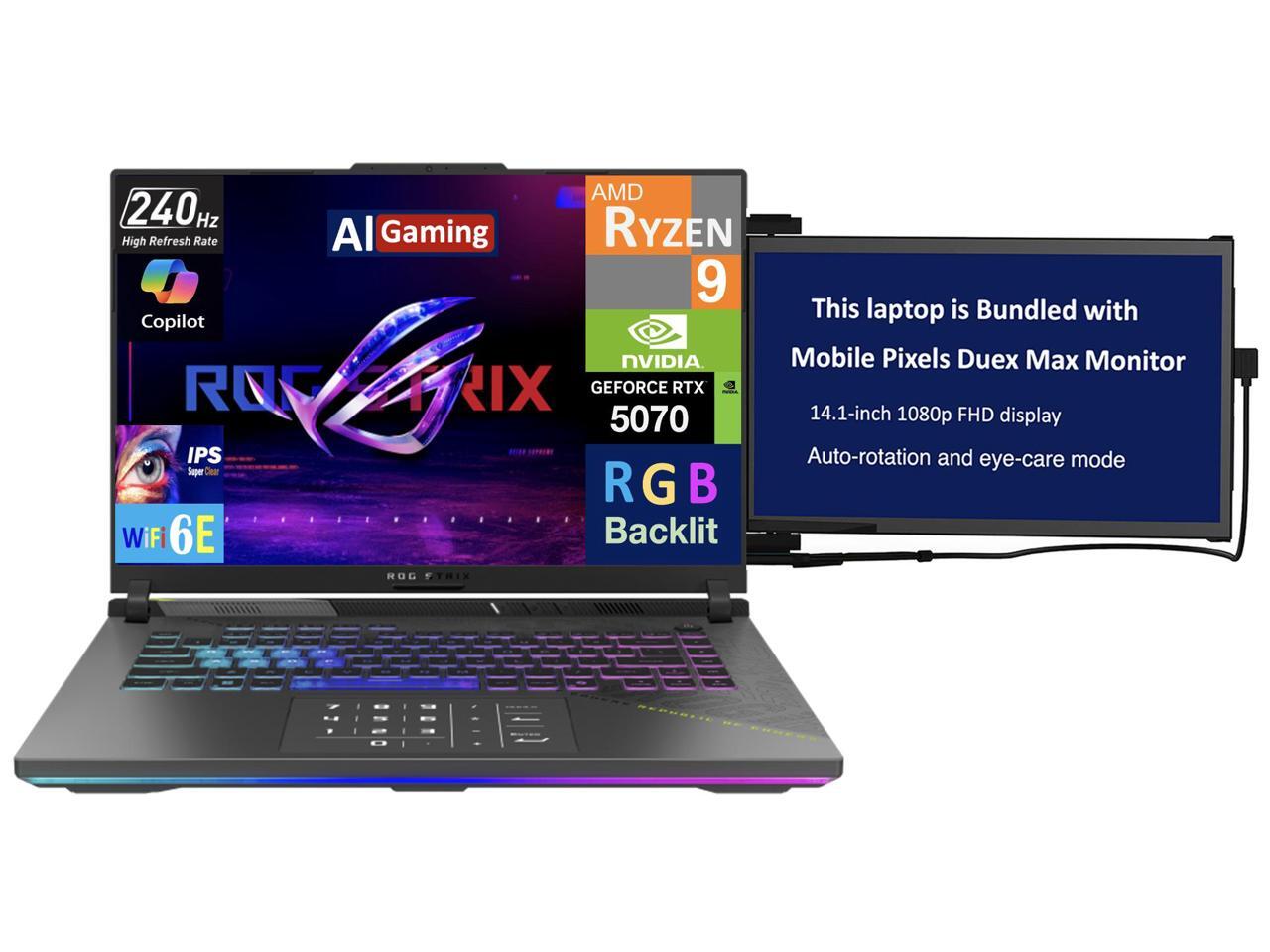 ASUS ROG Strix G16 AI Gaming Laptop 16.0" 240Hz IPS WQXGA Display (AMD Ryzen 9 9955HX, NVIDIA GeForce RTX 5070 8GB, 64GB DDR5, 2TB PCIe SSD, RGB KB, WiFi 6E, Webcam, Win 11 Home) w/Duex Max DS Monitor