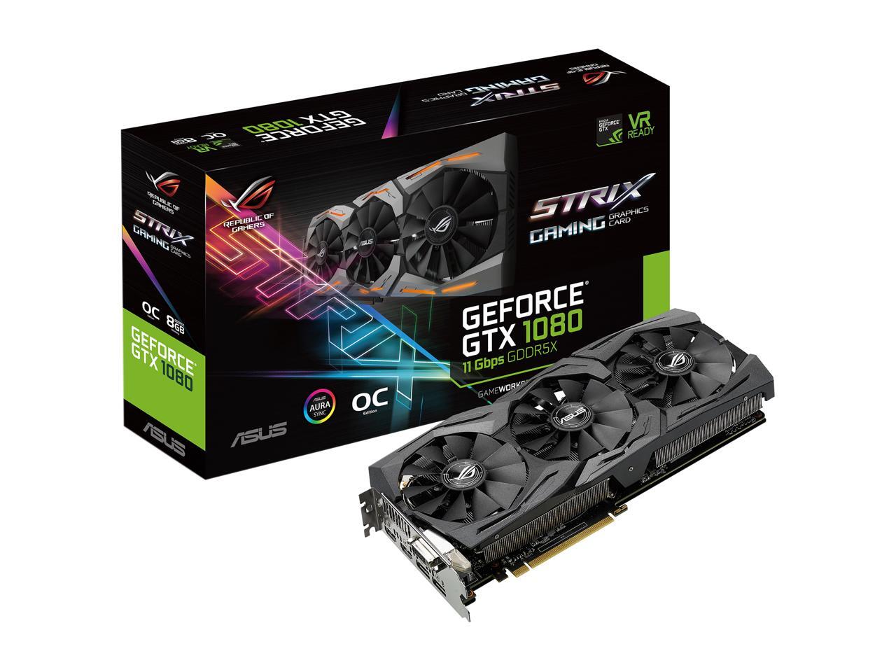 ASUS ROG Strix GeForce GTX 1080 8GB 11Gbps OC Edition VR Ready HDMI DP DVI Gaming Graphics Card (ROG-STRIX-GTX1080-O8G-11GPBS)