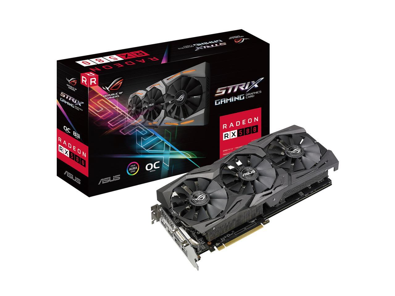 ASUS ROG Strix Radeon RX 580 O8G Gaming OC Edition GDDR5 DP HDMI DVI VR Ready AMD Graphics Card with RGB Lighting (ROG-STRIX-RX580-O8G-GAMING)
