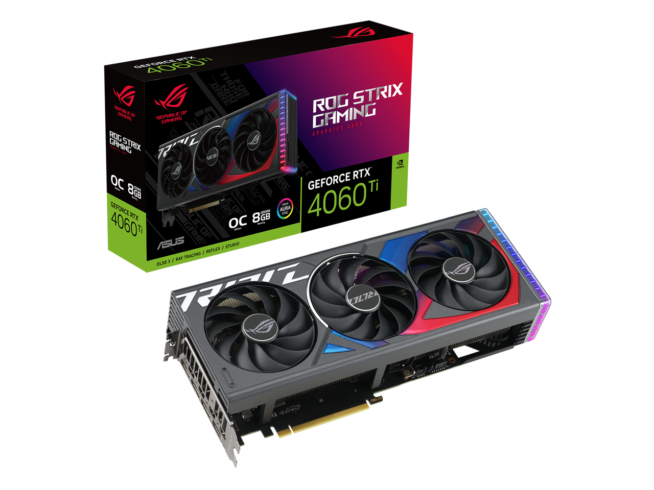 ASUS ROG Strix GeForce RTX 4060 Ti OC Edition Gaming Graphics Card (PCIe 4.0, 8GB GDDR6, DLSS 3, HDMI 2.1, DisplayPort 1.4a) ROG-STRIX-RTX4060TI-O8G-GAMING