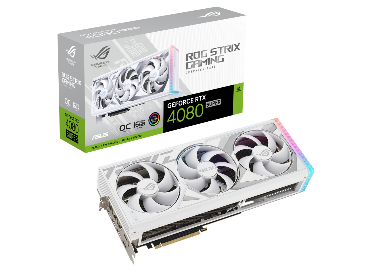 ASUS ROG Strix GeForce RTX 4080 SUPER White OC Edition Gaming Graphics Card (PCIe 4.0, 16GB GDDR6X, DLSS 3, HDMI 2.1a, DisplayPort 1.4a, Vapor Chamber) ROG-STRIX-RTX4080S-O16G-WHITE