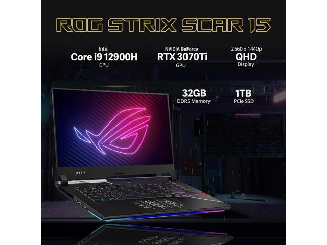 ASUS ROG Strix Scar 15.6" 240Hz QHD Gaming Laptop, 12th Gen Intel Core i9 12900H, 32GB DDR5, 1TB PCIe SSD, RGB Keyboard, NVIDIA GeForce RTX 3070 Ti, WIFI 6, Win 11 Pro, Black, 32GB Hotface USB Card
