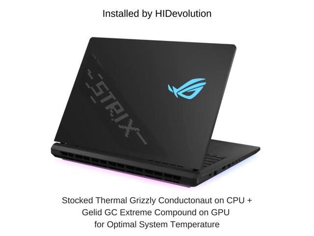 HIDevolution upgrades the 18" 2.5K (2560 x 1600, WQXGA) 240Hz Mini LED Display Gaming Laptop with stocked Thermal Grizzly Conductonaut on CPU by adding Gelid GC Extreme on GPU for improved performance and optimal system temperature