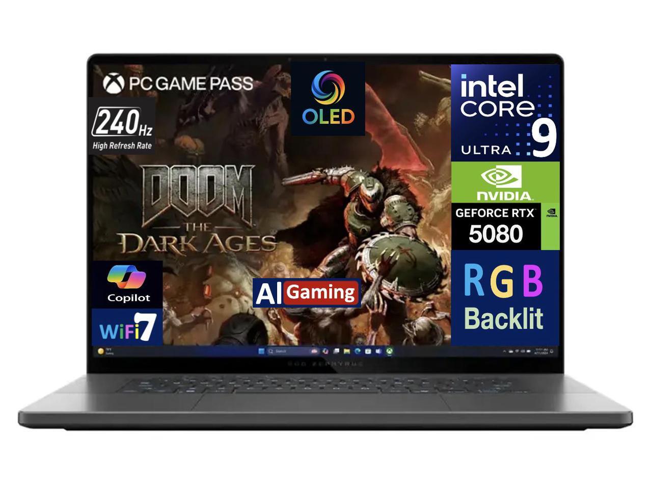 ASUS ROG Zephyrus AI Gaming Laptop 16.0" 240Hz OLED WQXGA Display (Intel Ultra 9-285H, NVIDIA GeForce RTX 5080 16GB, 32GB LPDDR5X, 2TB PCIe SSD, RGB KB, Thunderbolt 4, WiFi 7, Webcam, Win 11 Pro)