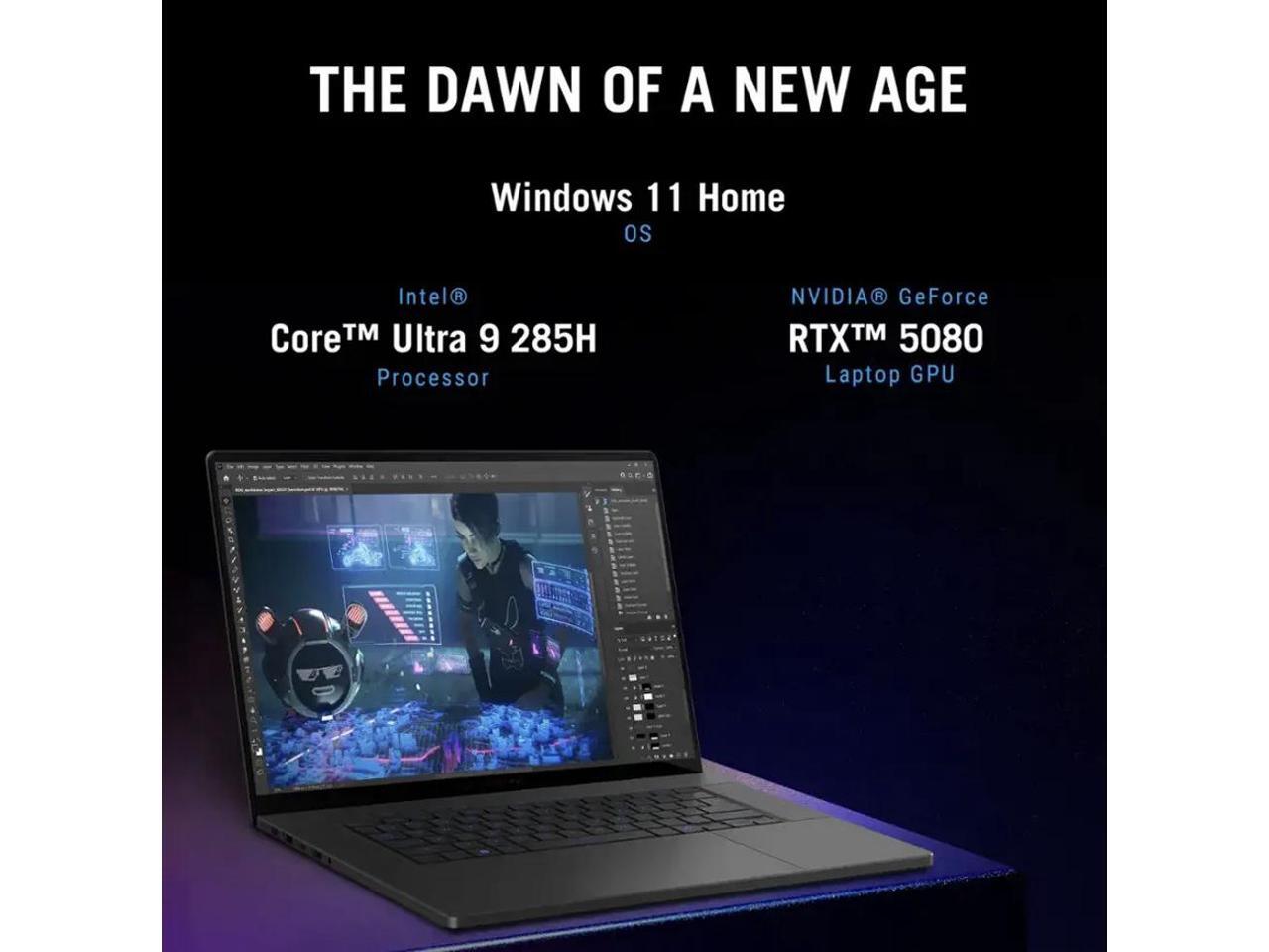 - 15th Gen Ultra 9-285H 2.90GHz Processor (upto 5.4GHz, 24MB Cache, 16-Cores, 16-Threads, 6 Performance-cores); NVIDIA GeForce RTX 5080 16GB GDDR7 Dual (Integrated+Dedicated) Graphics, VR Ready