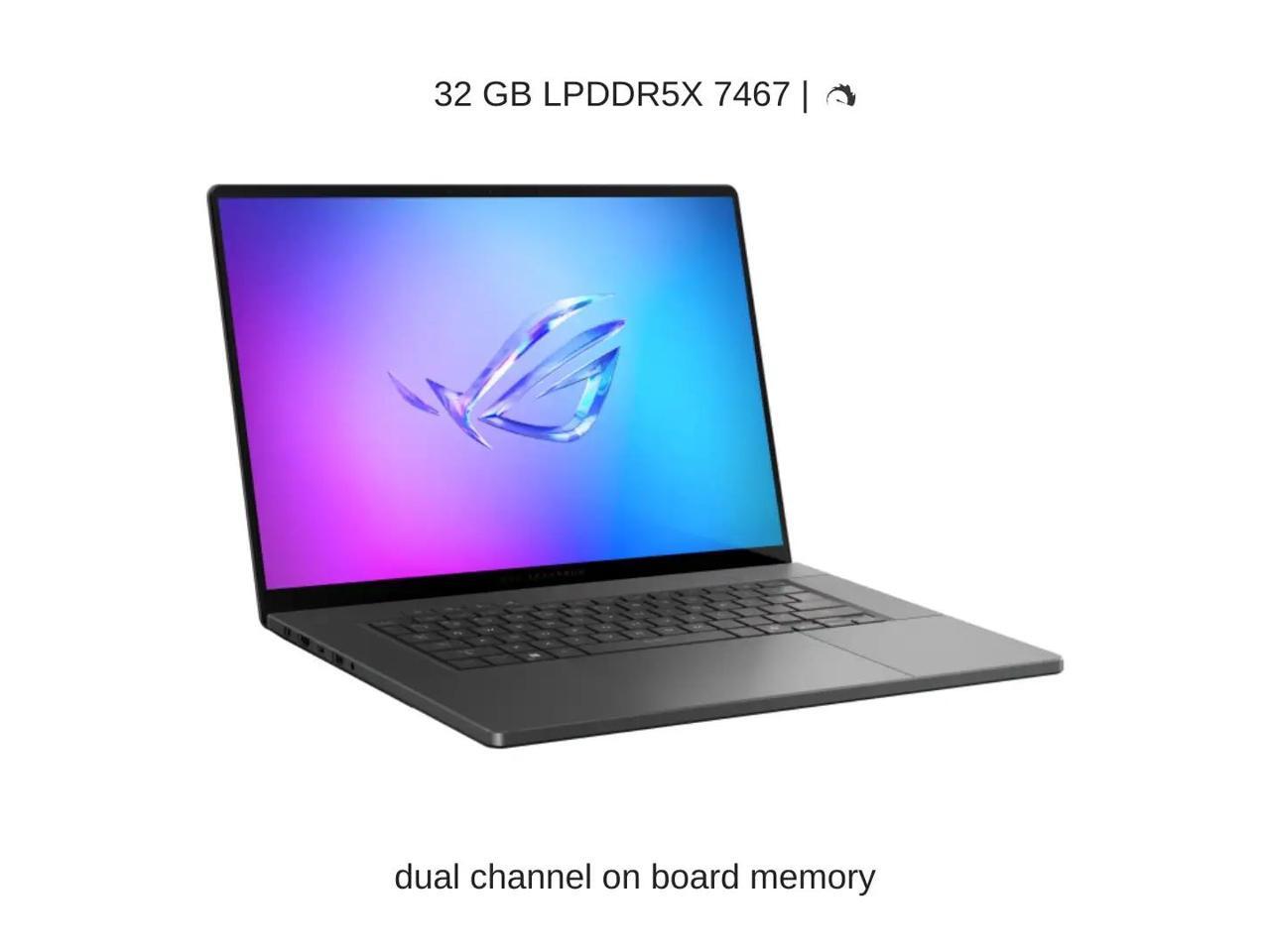 - 32 GB LPDDR5X 7467 dual channel on board system memory (Speeds subject to system capability)--run memory hungry applications and multitask with ease