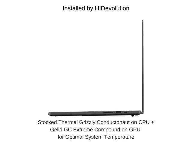 HIDevolution upgrades the 16" 2.5K (2560 x 1600, WQXGA) 240Hz OLED Display Gaming Laptop with stocked Thermal Grizzly Conductonaut on CPU by adding Gelid GC Extreme on GPU for improved performance and optimal system temperature