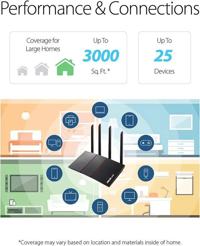 Ultra-fast WiFi Speed - RT-AX55 supports 80MHz bandwidth and 1024-QAM for dramatically faster wireless connections. With a total networking speed of about 1800Mbps - 574 Mbps on the 2.4GHz band and 1201 Mbps on the 5GHz band.