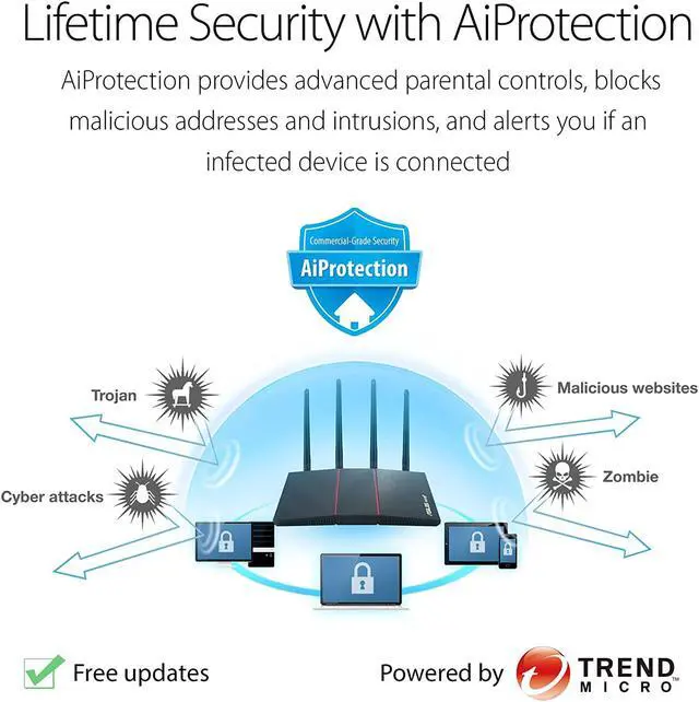 Protection for Your Home Network - lifetime free AiProtection, powered by Trend Micro, blocks internet security threats for all your connected smart devices.
