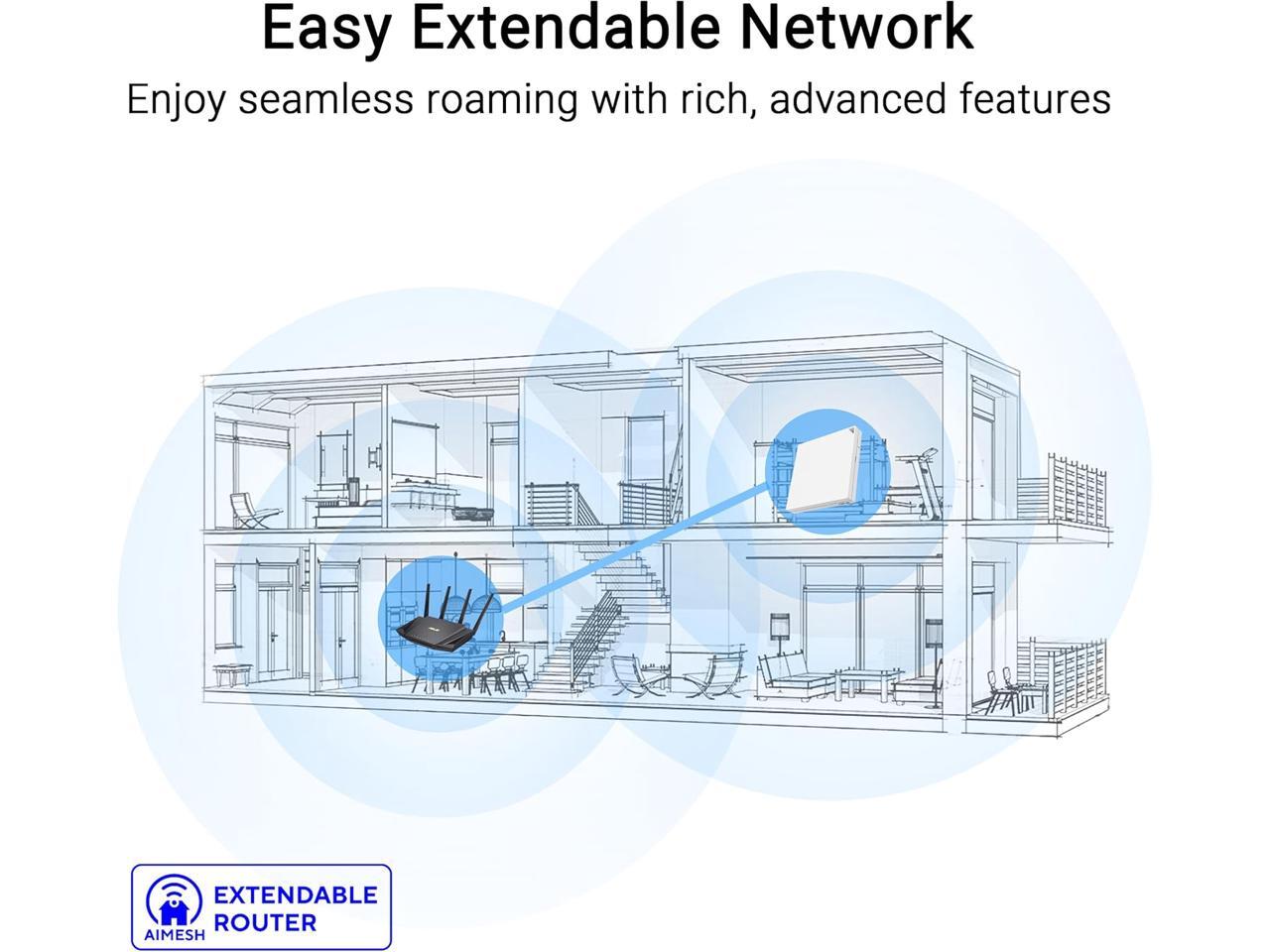 - AiMesh extendable router enables whole home seamless roaming with rich, advanced features.