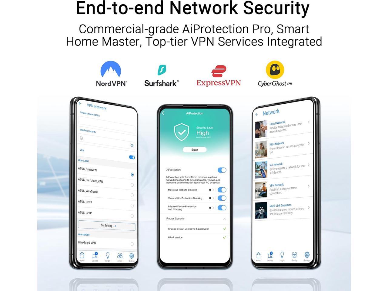 - Commercial-Grade Network Security – AiProtection Pro powered by Trend Micro, plus a one-tap security scan and Safe Browsing