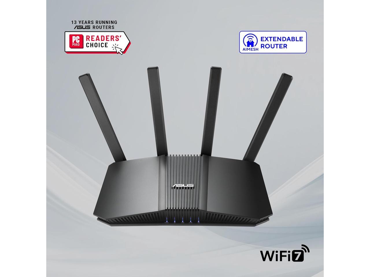 ASUS RT-BE82U Dual-band WiFi 7 (802.11be) Smart AiMesh Extendable Router, 6500 Mbps, Five 2.5GbE ports, 4096-QAM, Up to 3 SSIDs for IoT Devices, TAA Compliant