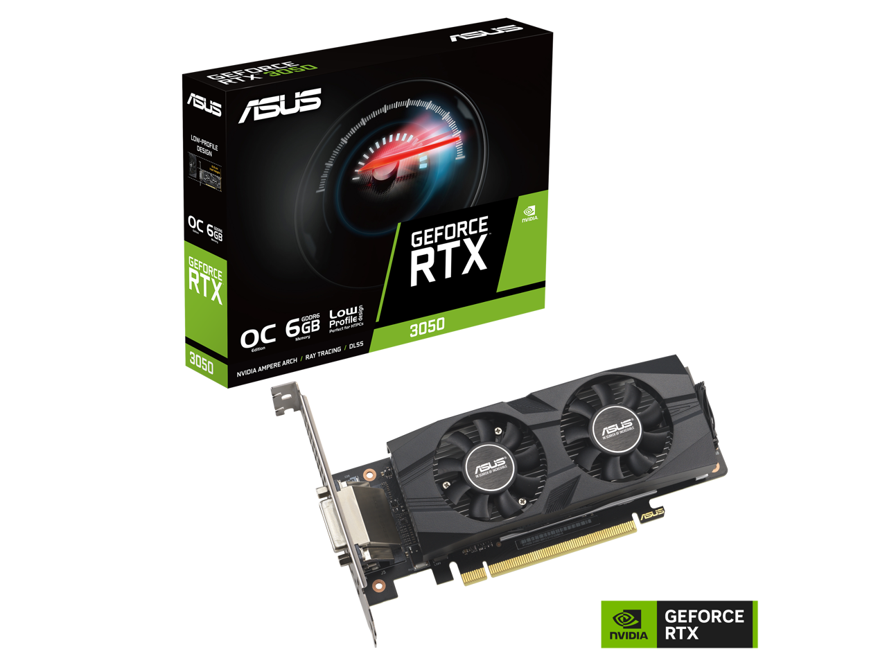ASUS GeForce RTX 3050 LP BRK OC Edition 6GB GDDR6 (IP5X dust resistance, dual ball bearings, stainless steel bracket, PCIe 4.0, DLSS 3, HDMI 2.1, DisplayPort 1.4a, DVI-D) RTX3050-O6G-LP-BRK