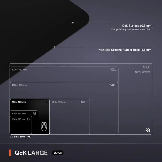 Never again run out of mouse tracking space in the middle of battle. The legendary QcK mousepad now provides complete desktop coverage for all your gaming peripherals.