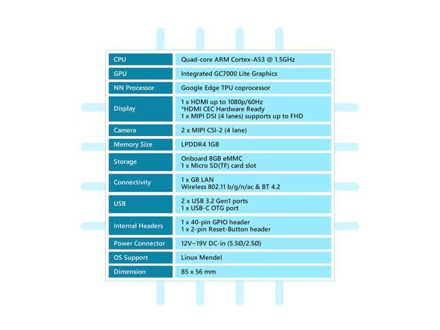 ASUS Tinker Edge T Soc 1.5 Ghz QuadCore CPU, GC7000 Lite Graphics, 1GB LPDDR4, 8GB EMMC Mini Motherboard (90ME0140-M0AAY0)