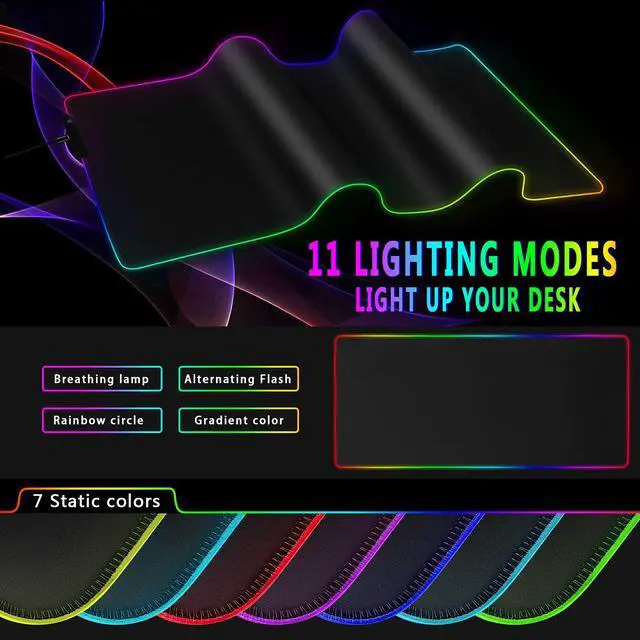 - LIGHT UP YOUR DESK- Connect the power cord to the computer's USB port, then enjoy these amazing mouse pads. Press the button to change color or turn it off, total has 11 light modes.
