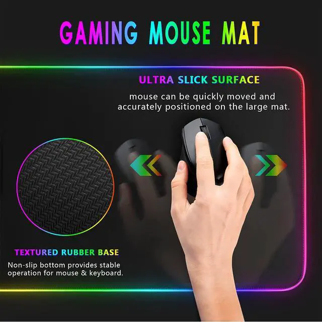 This 31.5" × 12" LED mousepad gives full-room coverage for your keyboard, mouse, and accessories. A non-slip rubber base helps keep the desk mat stable for consistent control and smooth movement.