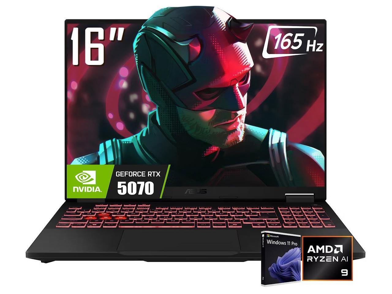 ASUS TUF A16 16" FHD+ 165Hz Gaming Laptop, AMD Ryzen AI 9 270 CPU(Up to 5.2 GHz), NVIDIA GeForce RTX 5070 8GB GDDR7, 32GB DDR5 RAM 1TB PCIe 4.0 SSD, RGB Backlit KB, RJ45, Win11 Pro