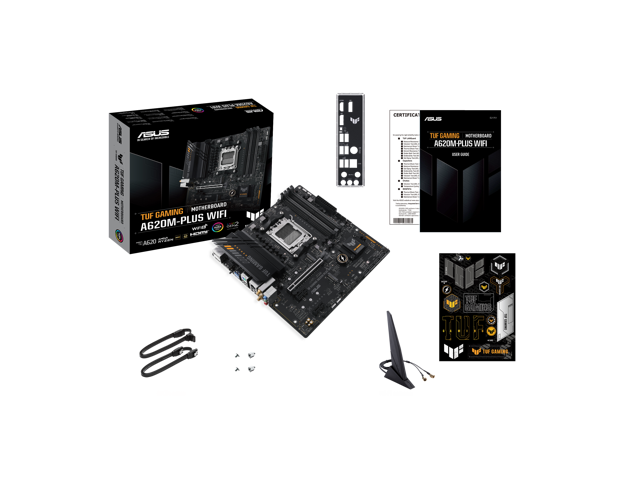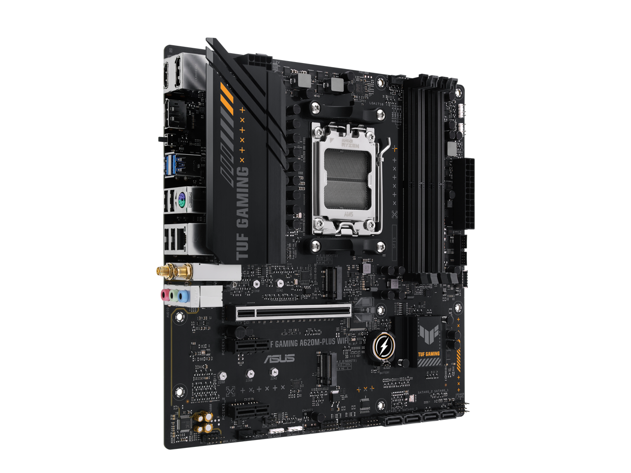 ASUS TUF GAMING A620M-PLUS WiFi AMD AM5 Ryzen7000 microATX gaming motherboard DDR5, PCIe 4.0, 2xM.2 slots,2.5Gb Ethernet,Wi-Fi 6, 2 x DisplayPort, HDMI, USB 3.2 Gen 1 ports, front USB 3.2 Gen 1 Type C