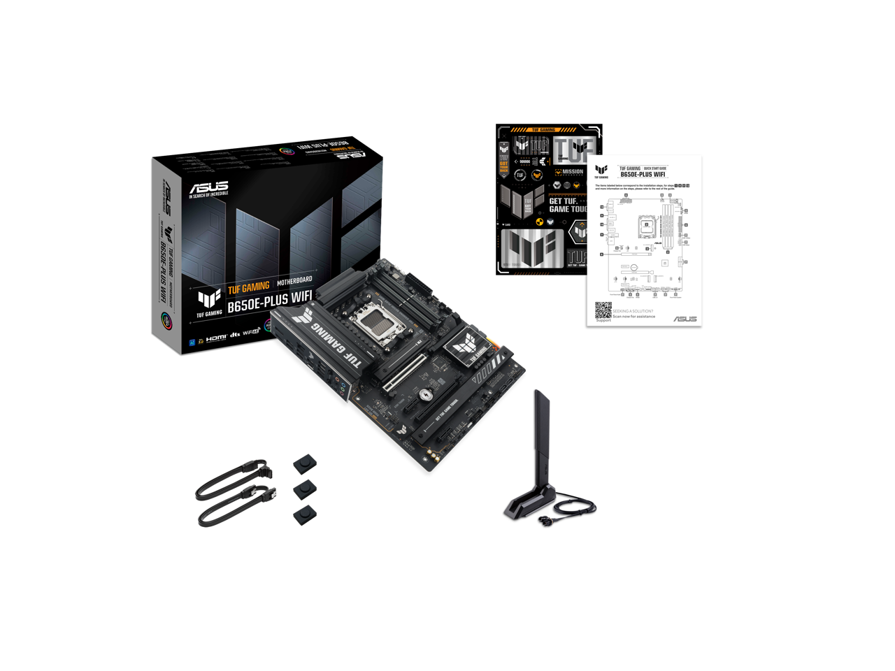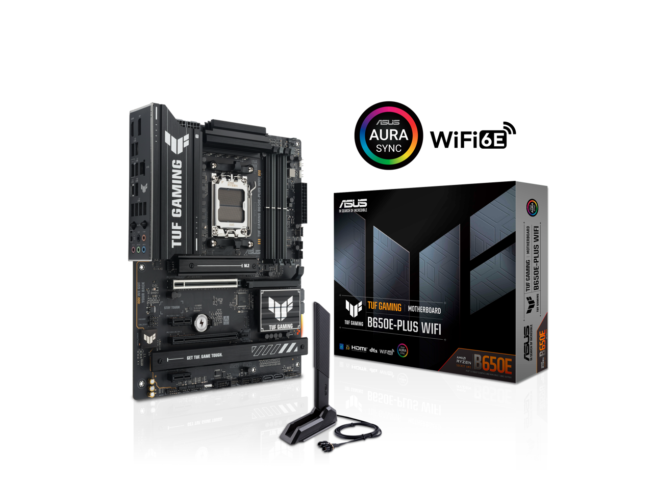 ASUS TUF GAMING B650E-PLUS WIFI AMD B650 ATX motherboard, 12+2+1 80A DrMOS power stages, DDR5, PCIe 5.0 Ready, 3x M.2, Wi-Fi 6E, 2.5Gb LAN, DisplayPort, HDMI, USB Type-C, BIOS FlashBack, Aura Sync