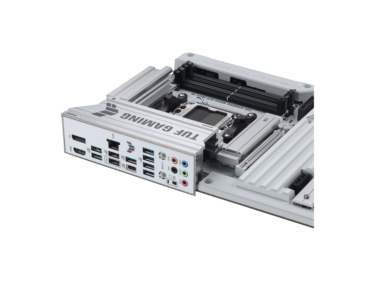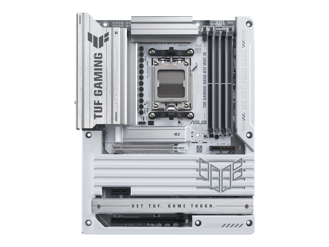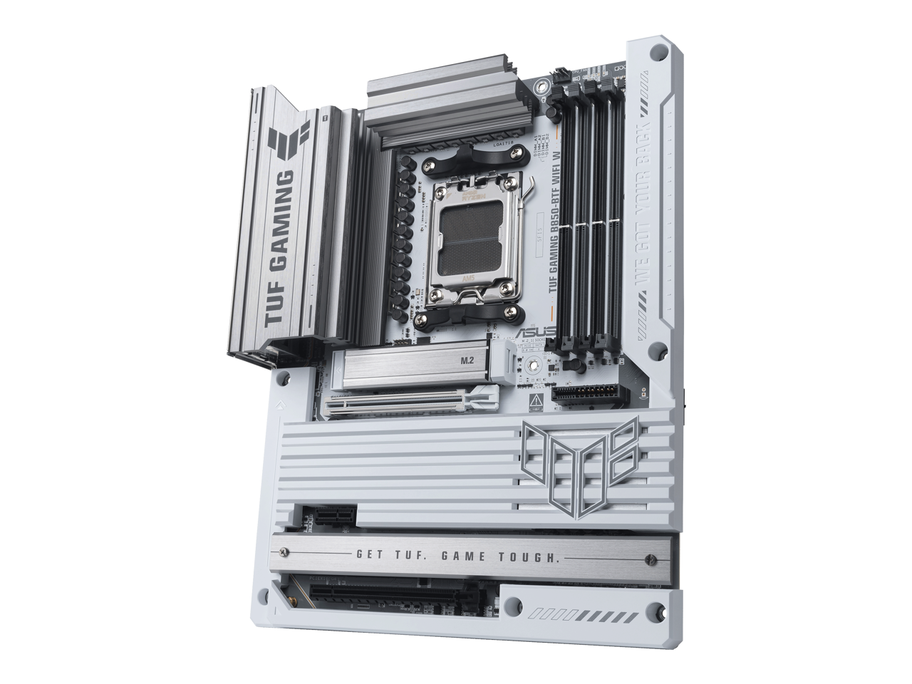 ASUS TUF GAMING B850-BTF WIFI W AMD B850 ATX motherboard, hidden-connector design, 14+2+1 80A DrMOS power stages, DDR5, PCIe 5.0 Ready, 3x M.2, Wi-Fi 7, 2.5Gb LAN, DP, HDMI, USB 20Gbps Type-C
