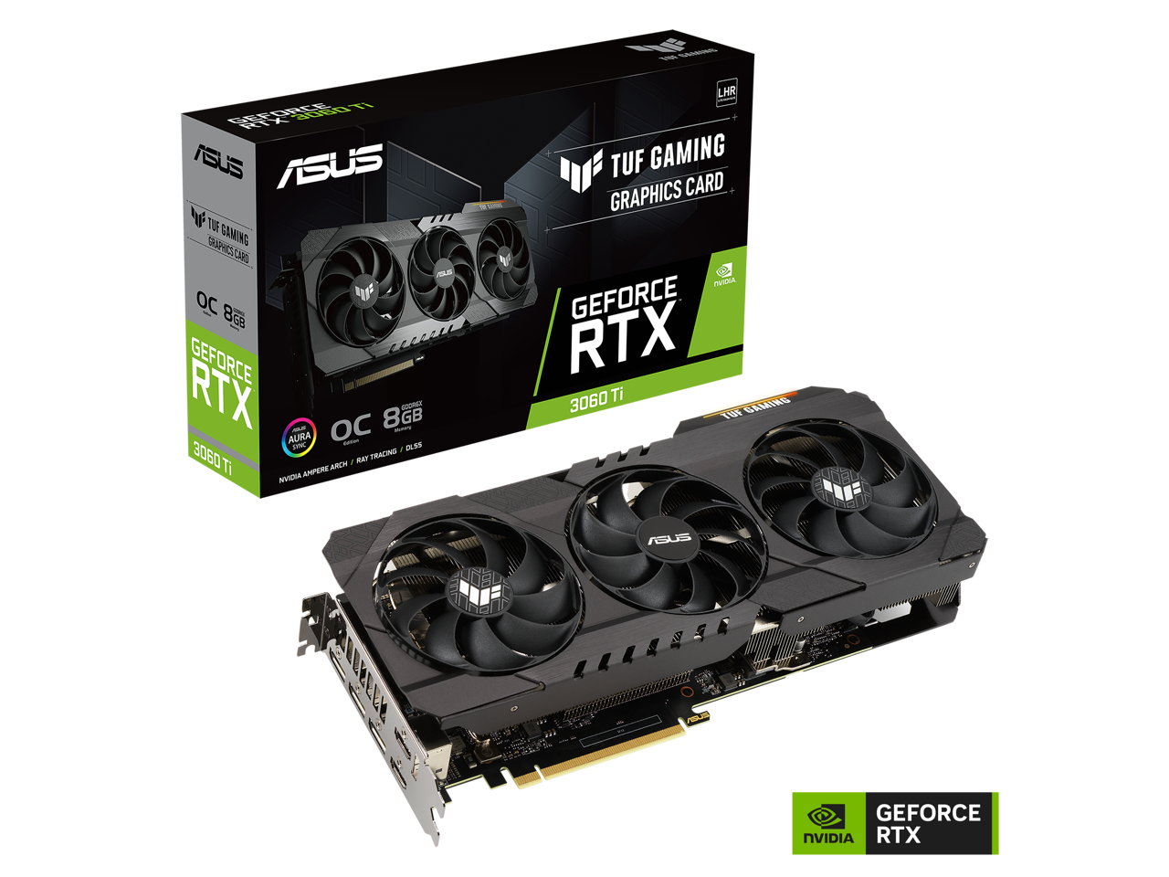 ASUS TUF Gaming NVIDIA GeForce RTX 3060 Ti OC Edition Graphics Card (PCIe 4.0, 8GB GDDR6X, HDMI 2.1, DisplayPort 1.4a, Dual Ball Fan Bearings, Military-grade Certification) TUF-RTX3060TI-O8GD6X-GAMING