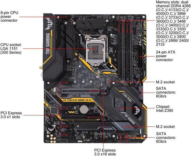 Special Features: Fan Xpert4 - Advanced fan and liquid controls for ultimate cooling and quietness ASUS TUF PROTECTION - ASUS DIGI+ VRM: Precision control for stable power - ASUS SafeSlot: Protect your graphics card Investment - ASUS ESD Guard: Enhanced ESD protection - ASUS Overvoltage Protection: World-class circuit-protecting power design - ASUS Stainless-Steel Back I/O: 3X corrosion-resistance for greater durability! - ASUS LANGuard: Protects against LAN surges, lightning strikes and static-electricity discharges! ASUS Optimem II: - Optimem (Improved DDR4 stability) ASUS EPU: - EPU TUF ENGINE! Power Design: - TUF Components (Choke, Cap. & MOSFET; certified by military-standard) AURA: - Aura Lighting Control - Aura RGB Strip Headers ASUS Exclusive Features: - AI Suite 3 - Ai Charger - Turbo LAN - PC Cleaner - File Transfer - ASUS C.P.R. (CPU Parameter Recall) ASUS Quiet Thermal Solution: - Stylish Fanless Design: PCH Heat-sink & MOS Heat-sink & M.2 Heat-sink solution - ASUS Fan Xpert 4 ASUS EZ DIY: - ASUS O.C. Tuner - ASUS CrashFree BIOS 3 - ASUS EZ Flash 3 - ASUS UEFI BIOS EZ Mode ASUS Q-Design: - ASUS Q-Slot - ASUS Q-DIMM M.2 Onboard (The latest transfer technologies with up to 32Gb/s data transfer speeds) MemOK! II - Enhance memory compatibility. More smart and convenient. Keep high performance (Shorten the PC starting time) Q-Installer - Auto download driver and software. Friendly for first PC builder