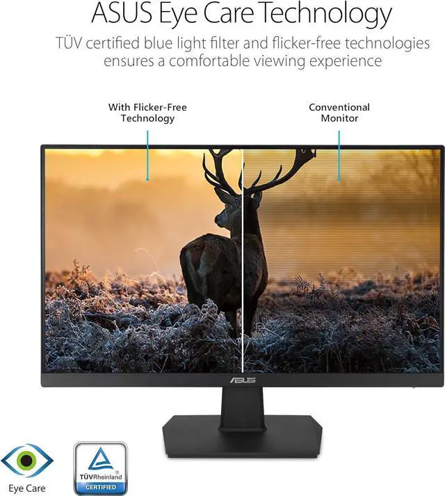 Asus Eye Care technology features TÜV Rhineland-certified flicker-free and low Blue light technologies to ensure a comfortable viewing experience
