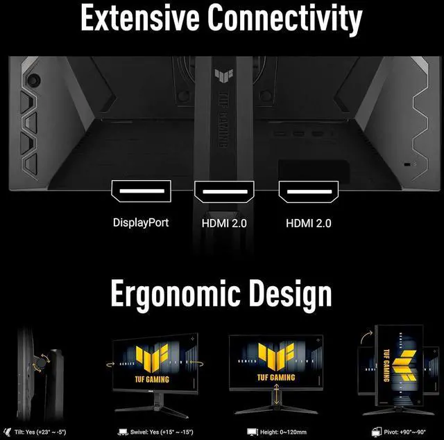 ASUS Fast IPS technology enables a 0.3ms (min) response time for sharp gaming visuals with high frame rates
