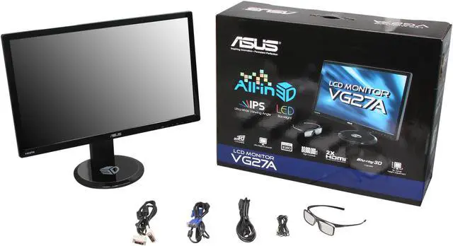 ASUS VG27AH Black 27" HDMI Widescreen 3D IPS LED Monitor 250 cd/m2 80,000,000:1 Built-in Speakers Height&swivel adjustable