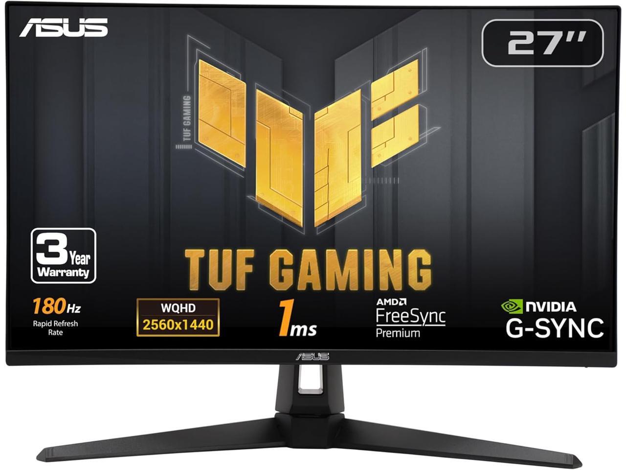 ASUS TUF Gaming 27" 1440P HDR Monitor (VG27AQ3A) - QHD (2560 x 1440), 180Hz, 1ms, Fast IPS, 130% sRGB, Extreme Low Motion Blur Sync, Speakers, Freesync Premium, G-SYNC Compatible, HDMI, DisplayPort,180Hz IPS,