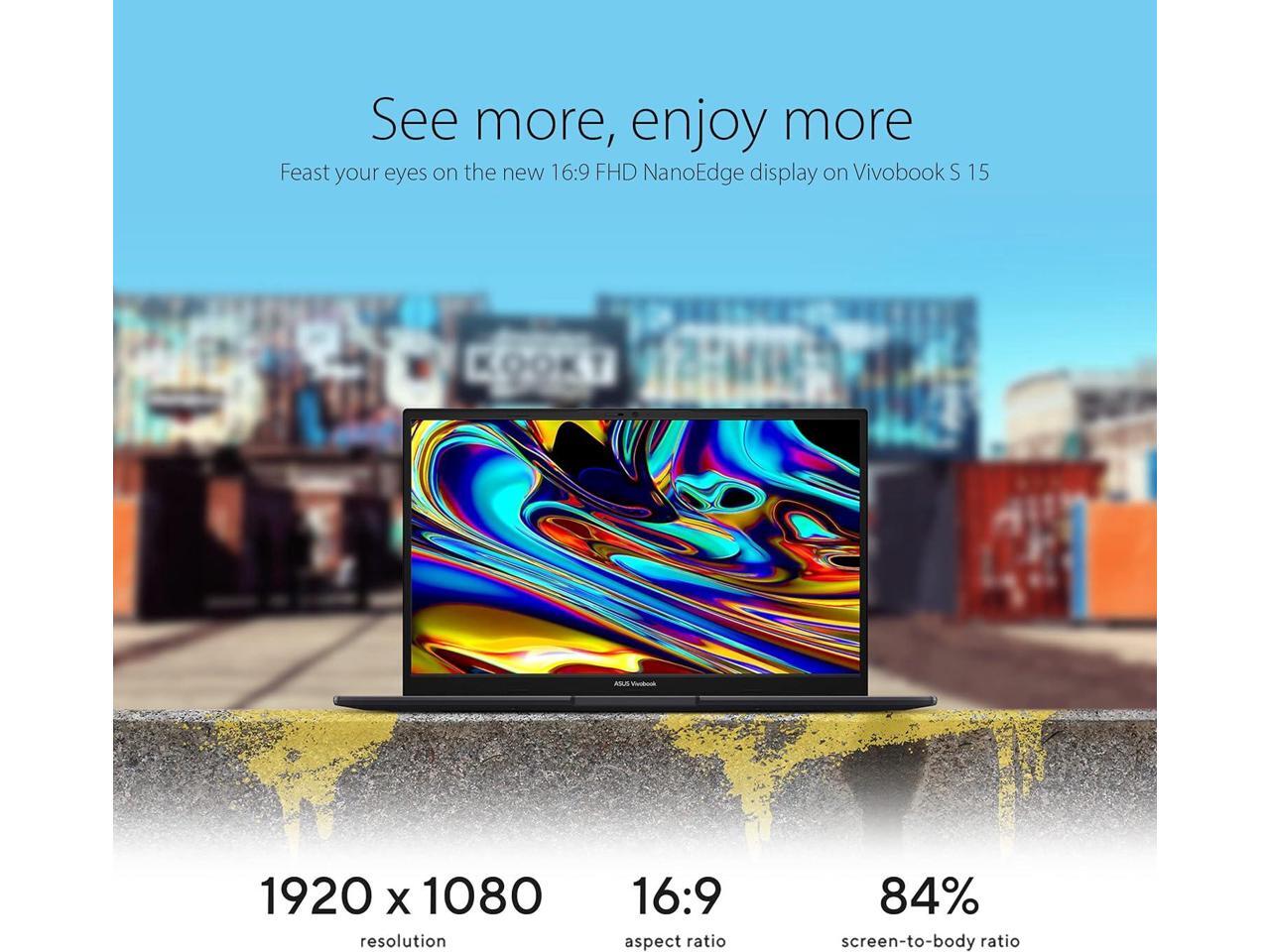 - ASUS VivoBook S 15 laptop comes with 15.6 FHD (1920 x 1080) with ultra-slim 4-sided NanoEdge bezels