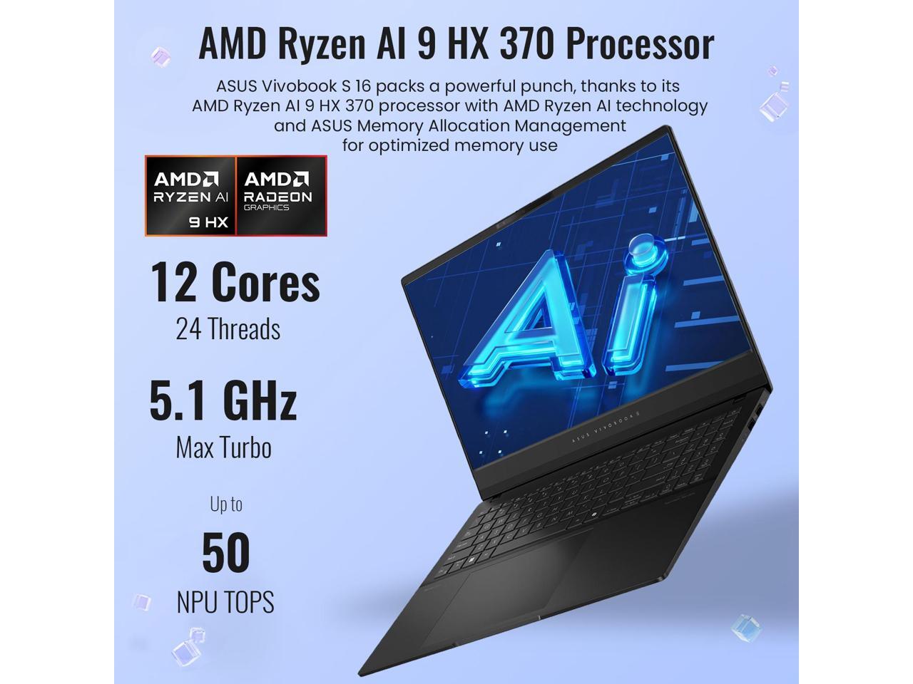 - [Powerful AI Performance] AMD Ryzen AI 9 HX 370 Processor (12 cores, 24 Threads, 36 MB L3 Cache, Base Frequency at 2.0 GHz, Up to 5.1 GHz at Max Turbo Frequency), integrated with AMD Radeon Graphics