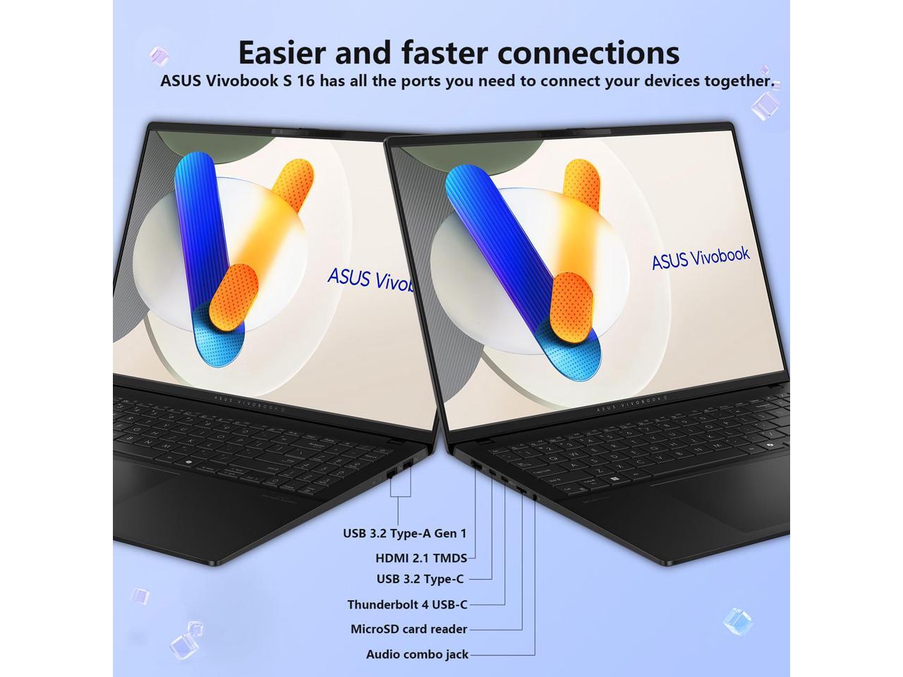 ASUS Vivobook S 16 AI Copilot+ Business Laptop, 15.6 2.8K(2880x1620) 120Hz, AMD Ryzen AI 9 HX 370, 32GB RAM, 2TB SSD, Radeon Graphics, Wi-Fi 6, RGB Backlit, FHD Camera, Windows 11 Pro, Black