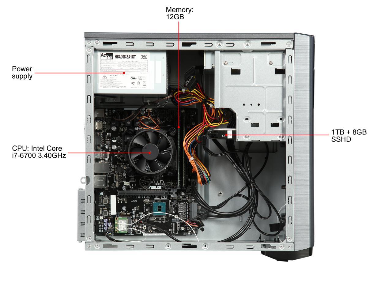ASUS Desktop Computer VivoPC M32CD-B09 Intel Core i7 6th Gen 6700 (3.40 GHz) 12 GB DDR4 1 TB SSHD (8 GB Cache) Windows 10 Home 64-Bit
