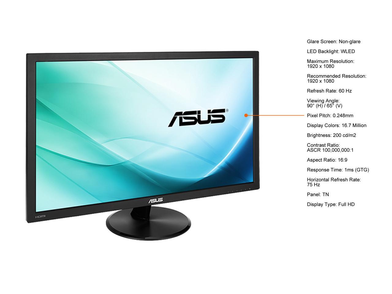 ASUS VP228HE 22" (21.5" Diagonal) Full HD 1920 x 1080 1ms HDMI VGA Asus Eye Care with Ultra Low-Blue Light and Flicker-Free Technology WideScreen LED Backlit Monitor