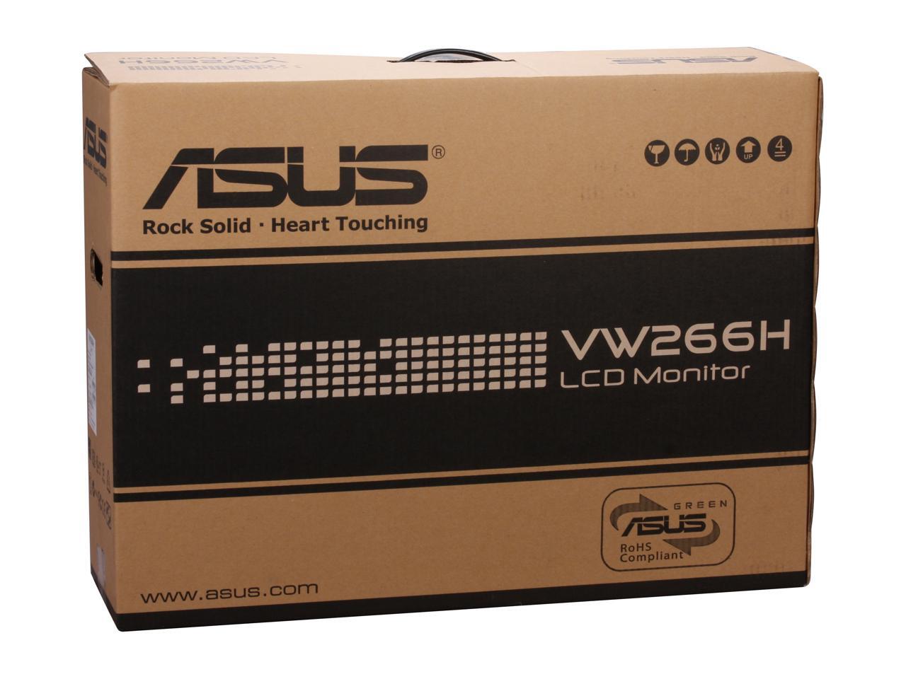 The 25.5" ASUS VW266H LCD monitor is a 16:10 widescreen display with 1920×1200 resolution that provides Full HD 1080p visual excellence and multimedia enjoyment. With a 20000:1 (ASCR) contrast ratio, 2ms quick response time and ASUS exclusive Splendid Video Intelligence technology that optimizes overall display for the best results in image preview, movie playback and gaming, you will enjoy true-to-life, vibrant images for various multimedia entertainment scenarios on the VW266H.