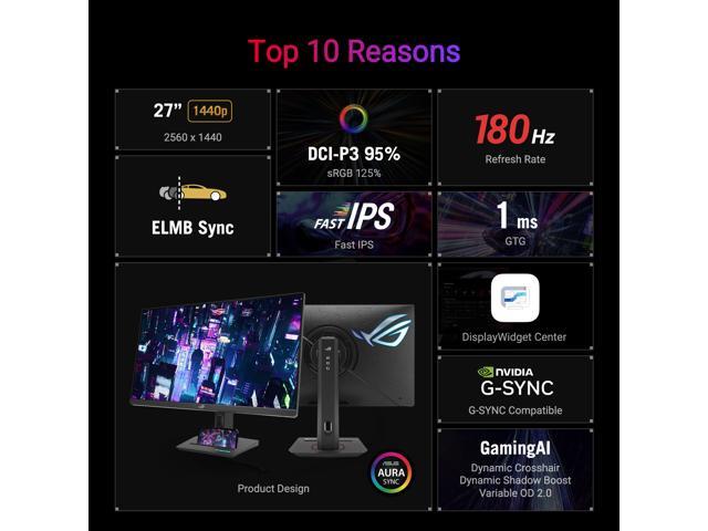 27-inch 2560 x 1440 HDR gaming monitor with ultrafast 180Hz refresh rate designed for professional gamers and immersive gameplay