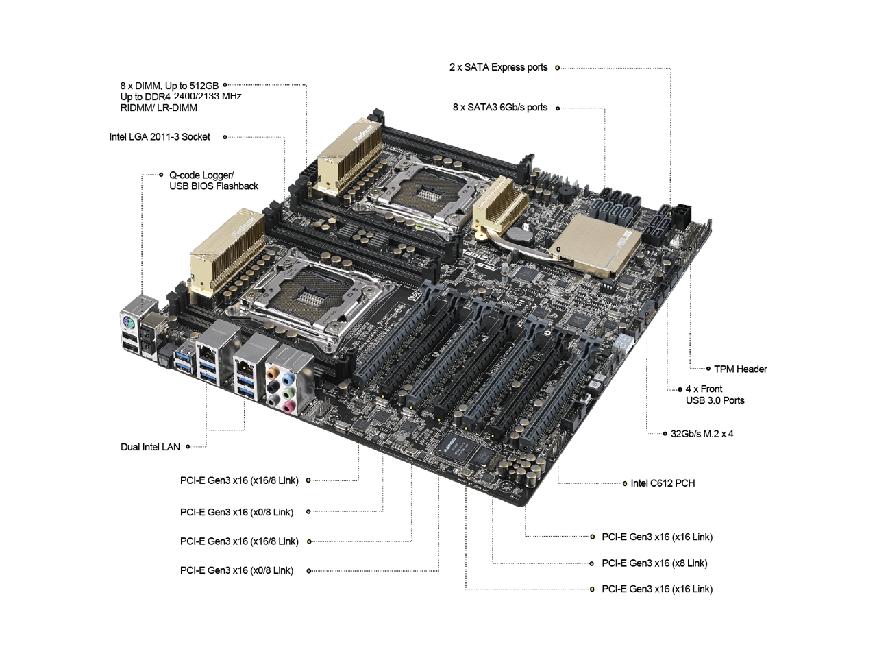 ASUS Z10PE-D8 WS EEB Workstations Motherboard- Intel® C612 PCH- Dual Socket 2011-3