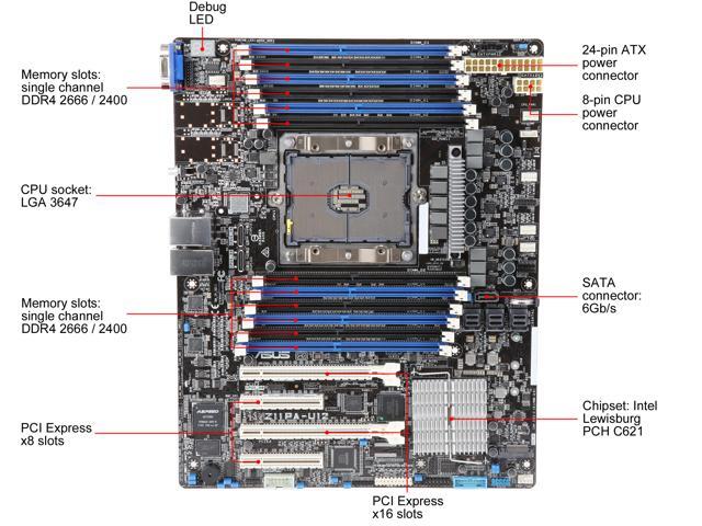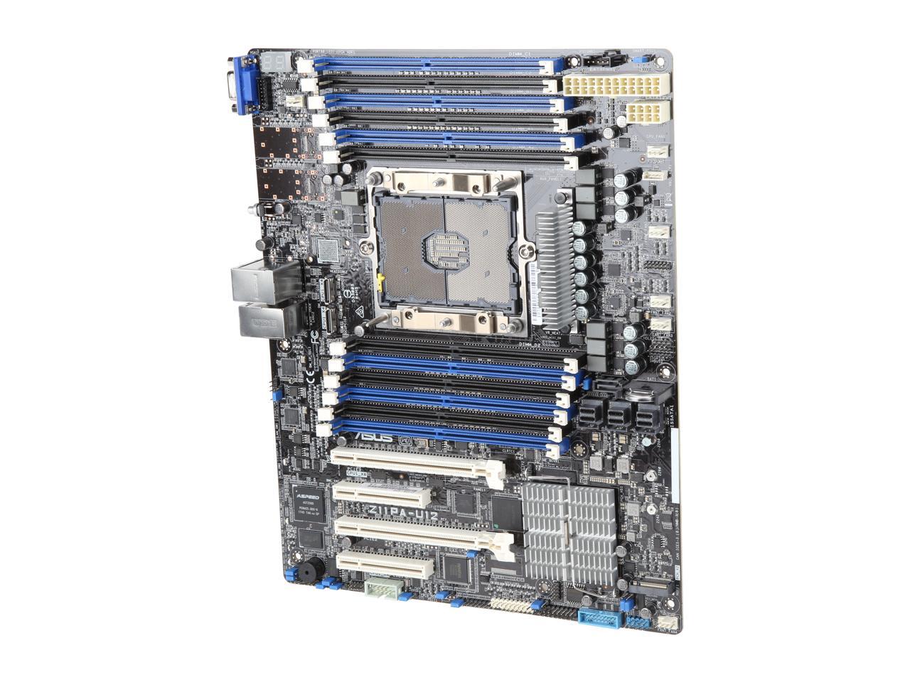 - ASUS Z11PA-U12 Intel Xeon Scalable Processor Server Socket LGA3647 ATX Motherboard featuring DDR4, M.2 NGFF, Dual Gigabit LAN, VGA, USB 3.0, support for 12 DIMM, OCulink for NVMe, 3x miniSAS SATA, and ASUS Control Center for centralized management