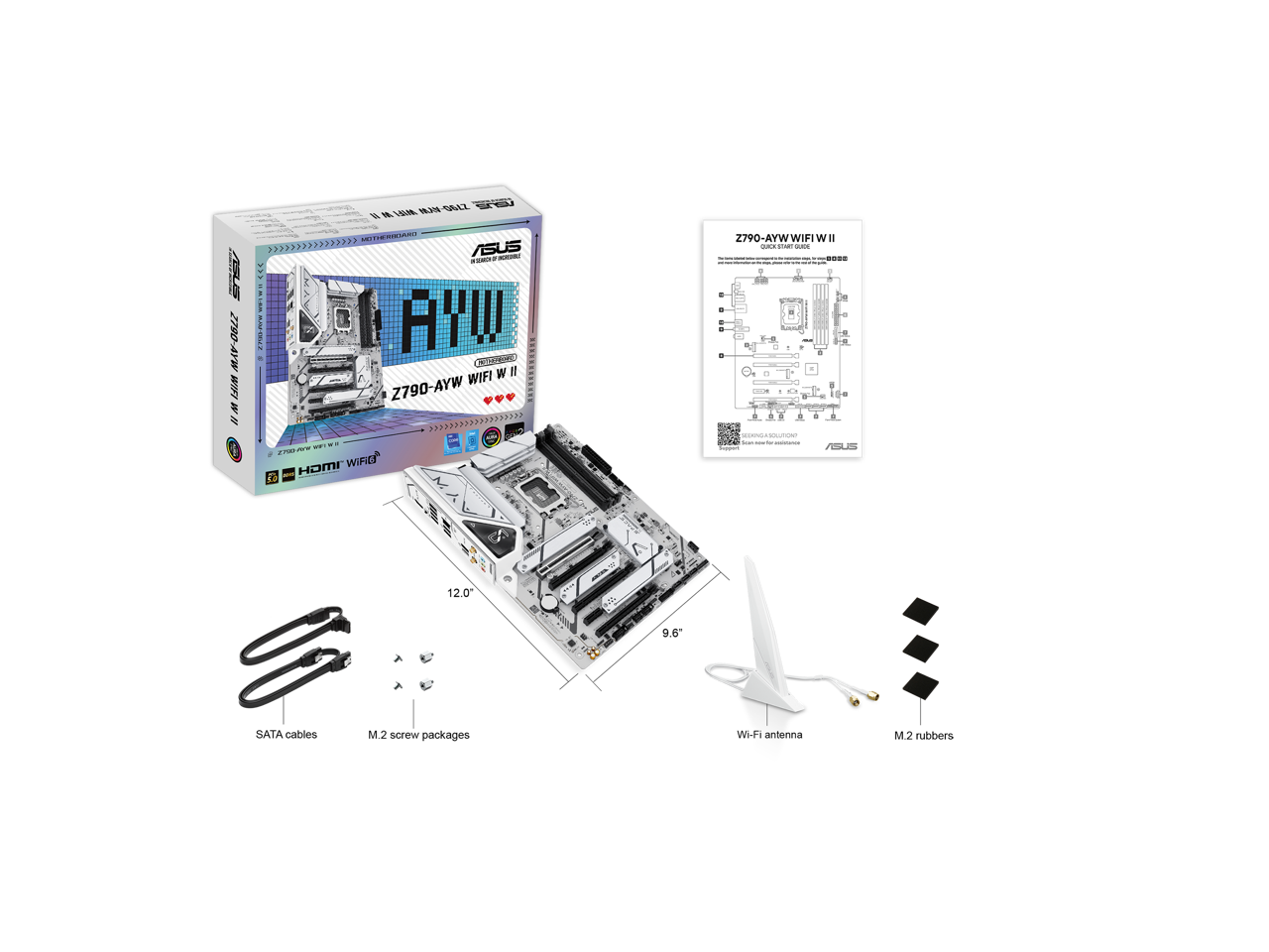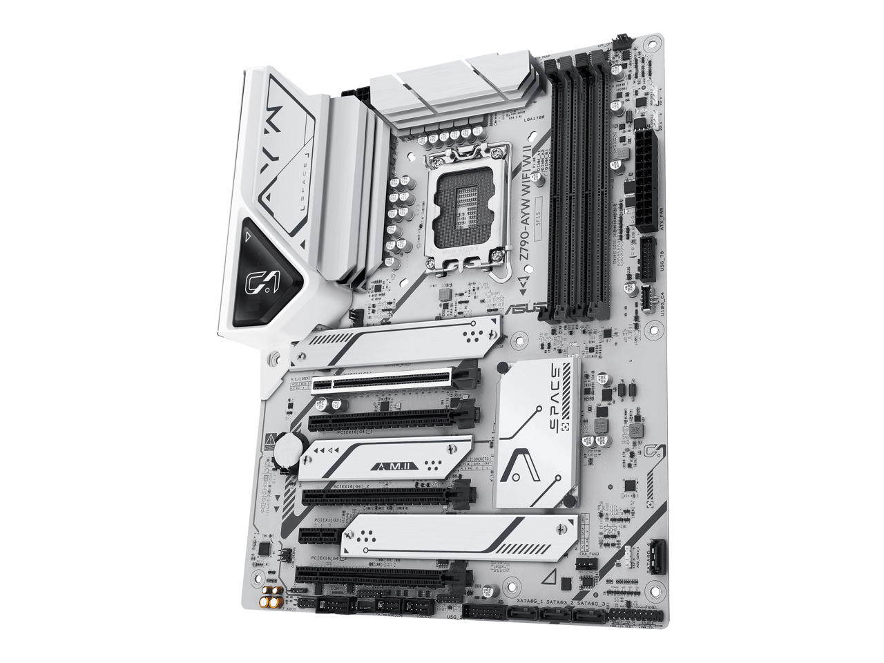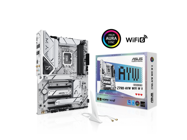 ASUS Z790-AYW WIFI W II Intel Z790 (LGA 1700) ATX motherboard with PCIe 5.0, three M.2 slots, 12+1 DrMOS, DDR5, WIFI 6, Realtek 2.5Gb LAN, HDMI, rear USB 10Gbps Type-C and Type-A, front USB 10Gbps Type-C, Thunderbolt (USB4), Aura Sync