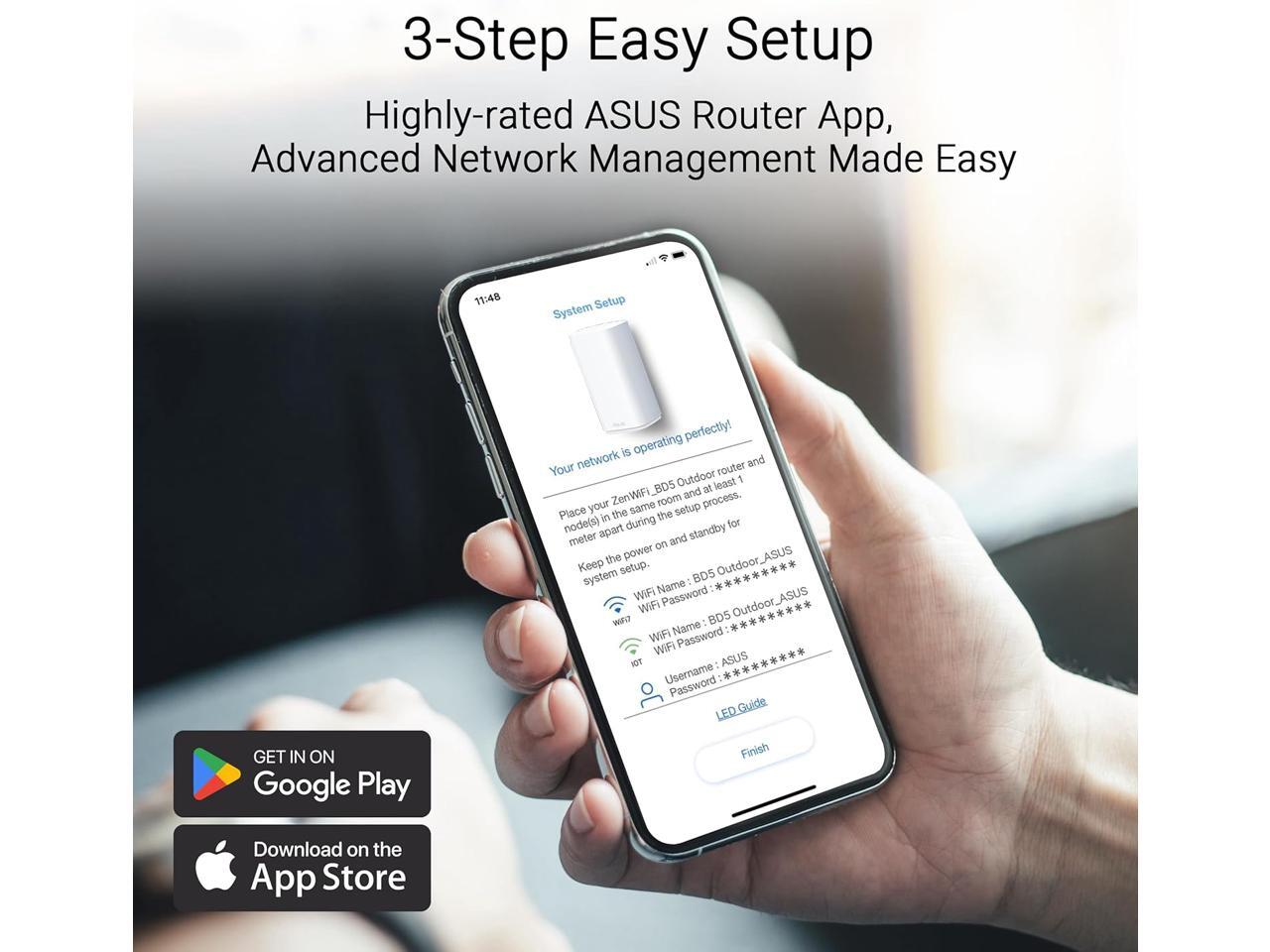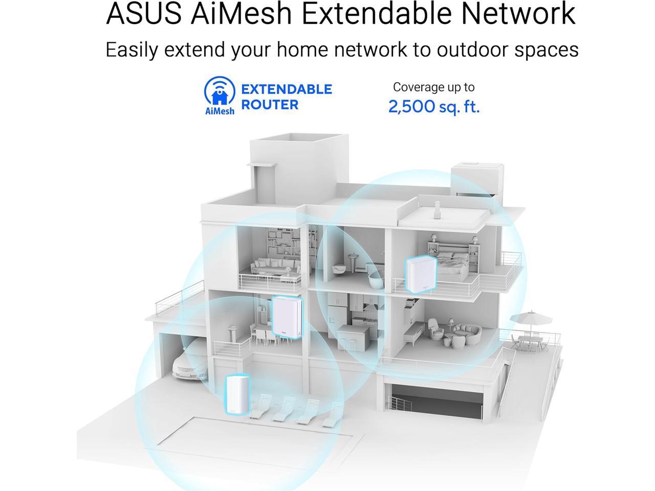 - WiFi 7 powering AiMesh technology boosts coverage up to 2500 ft², with easy extendibility and seamless connectivity for compatible ASUS routers, indoors and outdoors.